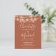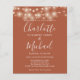 Featuring pretty string lights and your photo and signature style names, this elegant budget terracotta wedding invitation can be personalised with your information in chic lettering. Designed by Thisisnotme©