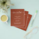 Budget elegant script minimalist modern non photo burnt orange earthy terracotta rust boho desert wedding save the date announcement personalised affordable low budget flyer. Simple clean design template feature an elegant cursive hand lettering typography script „Save the Date” text. This classic card perfect for a couple who wants a traditional save the date with a modern touch, without a photo. If you need help or matching items, please contact designer.