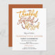Thankful Grateful Blessed Thanksgiving Dinner invitation. A budget friendly SMALLER 4.5” x 5.6” alternative. Available in a SEMI GLOSS 110 lb CARD STOCK or a SATIN FINISH 80 lb THINNER PAPER STOCK. Envelopes are an optional extra. Inspiring words Thankful, Grateful, Blessed in an elegant script in autumnal colours are at the top half, and the details are below against a white background. Easily personalise the text with your details.