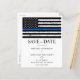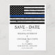 Invite your friends and family to celebrate your special day with these thin blue line police themed wedding save the date cards, accessories and gifts . These budget wedding invitation postcards need to be mailed as oversized postcards so may incur standard postage fees but they don't need an envelope or a return address label. Customise with your names, and all your wedding info. This law enforcement wedding collection will be a favourite among all police officers, police wife and law enforcement. COPYRIGHT © 2020 Judy Burrows, Black Dog Art - All Rights Reserved. Budget Thin Blue Line Law Enforcement Wedding Save The Date Postcard