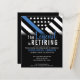 This design features a police force flag with black and white stripes, and a thin blue line stripe as well. "The Legend is Retiring" text sits above all of the party details for the retiring law enforcement officer, sheriff, captain, or chiefs retirement party details.