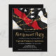 Celebrate your retirement and invite friends and family to your firefighter retirement with this Thin Red Line Firefighter Retirement Invitation - USA American flag design in Firefighter Flag colours , modern red black design . Personalise with name, fire department, address venue, and rsvp details. This firefighter retirement invitation can be used for firefighter graduation, simply change the text when personalising.See our collection for matching fireman retirement gifts, party favours, and supplies. COPYRIGHT © 2020 Judy Burrows, Black Dog Art - All Rights Reserved. Thin Red Line Fireman Firefighter Retirement Invitation