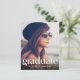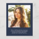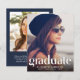 A budget friendly option to announce your graduate's achievements, this stylish graduation announcement features your grad's photo, "Graduate" written in a trendy white type typography with unique lines and his or her name, school and class year. On the reverse side, add an additional photo and a personalised message in simple white typography on a dark blue background.