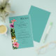 Save money on formal invitations with this paper invitation. Get your guests ready for the amazing wedding with your Tropical Hawaiian Floral Menu- Teal Blue Menu