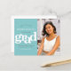 Make sure all your friends and relatives will be able to celebrate your graduate’s milestone graduation! Send out this stunning, simple, modern, personalised photo “Save the Date” budget announcement for an event to remember. Bold, graphic, white and soft grey typography overlay a turquoise aqua blue background. On the right hand side, add a photo of your choice. Personalise the custom text with your graduate’s name, class year and date. Your custom message and an aqua blue graduation cap icon adorn the back. Matching invites, thank you cards, cap toppers, napkins, plates and other graduation goodies are also available in this trendy and stylish collection. Guaranteed to add stylish fun to their special occasion!