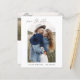 Budget Wedding Save the Date Cards that have a photo on the front and back (two photo). The Save the Date cards contain a modern hand lettered cursive script typography that are elegant, simple and modern to use after you minimalist simple wedding day celebration.