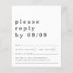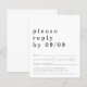 Budget Typography Black White Wedding RSVP. A budget friendly PAPER SMALLER 4.5” x 5.6” alternative to card. Envelopes are an optional extra. The header is large below in stylish lowercase with the details at the bottom. Easily personalise the text to your own details.