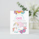 A budget price SMALLER 4.5” x 5.6” alternative. Available in a SEMI-GLOSS 110 lb CARD STOCK which is the default option (thicker for invitations), OR a SATIN FINISH 80 lb THINNER PAPER STOCK (ideal for enclosures). Envelopes are an optional extra and are slightly larger than the card size. For when you can't get together to celebrate in person, an online party is the next best thing. Here is a cute unicorn themed design for your little girl's Virtual First Birthday Party, along with colourful simplistic florals in shades of pink, teal and yellow. All of the text can be easily personalised to your own details. On the back, the background is white with teal stars. You can make further changes if you wish via the customise further option, to font styles and colours, and also the background colours.