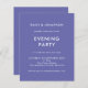 Simple Very Peri Blue Wedding Evening Party Invite. A budget price SMALLER 4.5” x 5.6” alternative. Available in a SEMI GLOSS 110 lb CARD STOCK which is the default option (recommended for invitations), OR a SATIN FINISH 80 lb THINNER PAPER STOCK (ideal for enclosures). On a background of periwinkle blue violet. Easy to personalise the text to your details and change colours of typography and background on each side if you wish can be changed to any or your choice via the customise further option.
