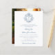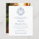 This budget-friendly wedding invitation features a sophisticated design with a vintage-inspired crest adorned with intricate botanical details and a customisable monogram, offering timeless elegance in a compact format. The refined combination of classic serif and flowing script fonts conveys a sense of formality and romance, while the soft blue colour palette enhances the graceful and traditional aesthetic. The back provides space for a personal touch with a photo of the couple, adding warmth and charm to this smaller, more economical option. Perfect for couples seeking affordable elegance without compromising on style, this invitation beautifully balances refinement and practicality.