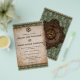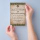 Crafted with care and attention to detail, our budget-friendly 'Vintage Steampunk Wedding Invitation Flyer' features a charming pattern of faded green, Victorian wallpaper adorned with gold metallic buttons for that industrial (yet decorative) look. A single ship's wheel adorns the front, and the back of the invitation features a large, metallic industrial plate with iron lacework around it with a pair of gold wedding rings in the centre. Take flight on your big adventure and set the stage for a memorable celebration with these unique steampunk wedding announcements, where vintage charm meets whimsical adventure.