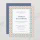 Celebrate the graduate in style with this elegant and unique graduation party invitation. Featuring a decorative tile-inspired border in shades of blue and orange, this design adds a touch of sophistication to the celebration. The centred text layout highlights the graduate’s name, school, and event details in a clean, modern font. Perfect for high school or college graduations, this invitation blends timeless design with contemporary style.