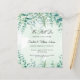 A green watercolored background decorated with eucalyptus greenery, forest ferns. Personalise and your name and ceremony details.