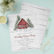 Budget Watercolor Cabin Holiday Open House Invitation - Our rustic invitation features a country Christmas cabin surrounded by evergreen pine trees complete with snow. Christmas event is pretty script typography. The background of the invitation is weathered whitewashed wood. Budget invitation is part of a collection.