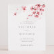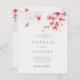 A modern elegant floral wedding invitation featuring blush pink watercolor cherry blossoms and modern calligraphy on a handmade paper texture.