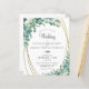 Modern, elegant botanical wedding invitations printed on lightweight paper ideal for conservative budgets and/or hand-delivering to guests with eucalyptus greenery, a faux gold glitter oval frame and soft charcoal grey text. Contact the designer via Zazzle Chat or makeitaboutyoustore@gmail.com if you'd like this design modified, on another product or coordinating items.