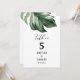 watercolor palm table number wedding day decor. On trend script text, part of a matching wedding suite.