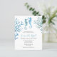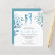 watercolor seahorse and coral baby shower invitations. Ideal for setting the stage for a boy's baby shower, these invites captivate with their serene depiction of the underwater world in soothing shades of blue and turquoise. Highlighting the elegant dance of seahorses amongst coral reefs, each invitation is a visual delight. Embellished with the phrase "Ocean of Love" in stylish typography, they promise an event filled with wonder and joy.