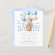Budget we can bearly wait teddy bear blue hot air balloon baby shower invitation.