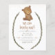 Budget and cute bear theme gender-neutral baby shower featuring a hand-painted illustration of a baby bear cub with a greenery wreath. The text says "we can bearly wait!" in handwritten-style typography. Design features a rustic boho text layout. Cards reverse to a brown background with white lines. This invitation is great for a gender-neutral shower in the fall. To make advanced changes, please select the "Click to customise further" option under "Personalise this template". As part of the budget selection on Zazzle, this sheet isn't a standard invite size or paper quality. If you want this design on an invitation card you can find it in our store or use the Zazzle Make Machine to transfer it onto the product of your choice. Contact me for matching items or for customisation!