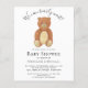 This Budget Couple's Baby Shower Invitation is decorated with a cute watercolor teddy bear and the words "we can bearly wait!"