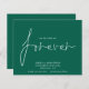 A value for money BUDGET alternative on a smaller size 4.5 x 5.6” semi-gloss 110lbs weight, which is of similar thickness to a postcard (however is not suitable to use as a postcard.). PLEASE NOTE there is ONE invite per sheet. Budget We Decided on Forever Emerald Green Save The Date. Elegant typography design to invite your guests to save your date. We Decided on Forever which is in a stylish set script is in the centre. The rest of the text you can easily personalise. Text and background colours can be changed if you wish to better suit your wedding theme via the customise further option.