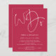 Script We Do Magenta QR Code Wedding Invitation. A budget price SMALLER 4.5” x 5.6” alternative. Available in a SEMI-GLOSS 110 lb CARD STOCK which is the default option (thicker for invitations), OR a SATIN FINISH 80 lb THINNER PAPER STOCK (ideal for enclosures). Add your QR code to your wedding website on the back makes this a convenient option for your guests to RSVP and see all the details without the need for separate RSVP and details cards - simply change the sample url to your own and your QR code will be automatically generated to replace the sample one. A simple yet elegant design on a background of enchanted dusty navy blue. Stylish set script We Do takes centre stage at the top.The rest of the text you can easily personalise. Text and background colours can be changed if you wish to better suit your wedding theme via the customise further option.