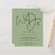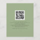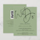 Script We Do Sage Green QR Code Wedding Invitation. A budget price SMALLER 4.5” x 5.6” alternative. Available in a SEMI-GLOSS 110 lb CARD STOCK which is the default option (thicker for invitations), OR a SATIN FINISH 80 lb THINNER PAPER STOCK (ideal for enclosures). Add your QR code to your wedding website on the back makes this a convenient option for your guests to RSVP and see all the details without the need for separate RSVP and details cards. A simple yet elegant design on a background of sage green. Stylish set script We Do takes centre stage at the top.The rest of the text you can easily personalise. Text and background colours can be changed if you wish to better suit your wedding theme via the customise further option.
