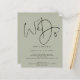 Script We Do Soft Sage QR Code Wedding Invitation. A budget price SMALLER 4.5” x 5.6” alternative. Available in a SEMI-GLOSS 110 lb CARD STOCK which is the default option (thicker for invitations), OR a SATIN FINISH 80 lb THINNER PAPER STOCK (ideal for enclosures). Add your QR code to your wedding website on the back makes this a convenient option for your guests to RSVP and see all the details without the need for separate RSVP and details cards. A simple yet elegant design on a background of soft sage green. Stylish set script We Do takes centre stage at the top.The rest of the text you can easily personalise. Text and background colours can be changed if you wish to better suit your wedding theme via the customise further option.