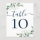 BUDGET Wedding Blue Text Eucalyptus Table Number