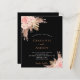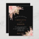 For a modern boho style wedding. A stylish black background. Decorated with rose gold and pink florals, roses and pampas grass. Personalise and add names and details.