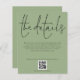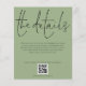 A value for money BUDGET alternative on a smaller size 4.5 x 5.6” semi-gloss 110lbs weight, which is of similar thickness to a postcard (however is not suitable to use as a postcard.). PLEASE NOTE there is ONE invite per sheet. Budget Wedding Details QR Code Script Sage Enclosure. Let your guests know details such as directions and accommodation information for your wedding when you send their invitations. This elegant design has set stylish large typography for the heading The Details and the rest of the text can be easily personalised to your words along with your website QR code. You can choose any colours of your choice for the text and background colours on both sides via the customise further option.