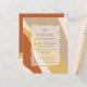 Affordable Wedding invitations don't have to be boring - Low Budget Modern abstract Wabi Sabi Wedding features minimalist text in a clean font style over a sheer white gold trimmed frame showing the curving abstract design behind it - shown here in goldenrod yellow, terracotta, latte and cream. (all of these colours can easily be changed by YOU! Just choose the Customise further and on the left side find the SVG file.. on the right column your colours choices for each part of the design will be available to change - An easy to complete wedding template priced for your budget -