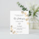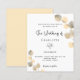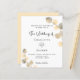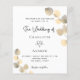 A white background decorated with golden eucalyptus sprigs. Personalize and your name and ceremony details. Black colored letters.