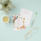 This modern wedding card has a warm, minimalist design. The front features a lively script text above your first names and date. On the back, we've set the background as transparent, so that the colour of the paper will serve as the base colour. You can choose a colour for the background, if you prefer. All aspects of this design can be edited (font, text size, or floral accents moved/removed) to fit your needs. Please contact me if you need help with this design.