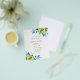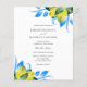 Simple yet botanical, this budget wedding invitation features watercolor lemons and blue embellishments with your details in charcoal grey over a crisp white background. Use the template fields to customise with your names and wedding date. An elegant choice for rustic, tuscan, Italian, Greek and Mediterranean weddings.