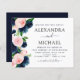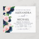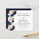 Budget Navy Blue and Blush Pink Modern and Elegant Floral Watercolor Spring Wedding Invitations - includes beautiful and elegant script typography with modern botanical flowers and greenery for the special Wedding day celebration.