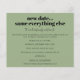 A value for money BUDGET alternative on a smaller size 4.5 x 5.6” semi-gloss 110lbs weight, which is of similar thickness to a postcard (however is not suitable to use as a postcard.). PLEASE NOTE there is ONE invite per sheet. Wedding New Date Same Everything Else Sage. When things happen and unfortunately it is necessary to change the date of your wedding, this will enable you to let your guests know your new date as soon as possible. This simple typographical design with black text on sage green is fully customisable. Easily personalise the text on the front and back. You can also change font styles and colours and background colours if you wish via the customise further option. If you need any help please message me.