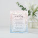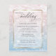 NEW! Affordable Budget Wedding | Stunning shimmering sparkly Ocean waters glistening in the setting sun - in pale shades of dusty rose pink and dusty blue - text appears on a sheer white sparkling gold edged frame that shows the design but allows the text to easily be read. Accented with beautiful elegant handwritten calligraphy. Easy to personalise wedding template.