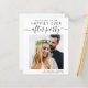 Modern and chic budget-friendly elopement or small wedding announcement and reception save the date featuring your photo and "Save The Date For Our Happily Ever After Party" in a mix of simple typography and trendy script with swashes. Under your photo, add your first names and reception date and location; on the reverse side, personalise your wedding announcement and reception information in more detail. This budget semi-gloss paper is similar in weight to photo paper. A larger 5x7 traditional card stock version is also available (message us for the link).
