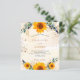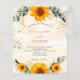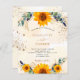 A white and golden watercolored background decorated with sunflowers, eucalyptus greenery and golden leaves and faux gold glitter dust. Personalize and add your names and party details.