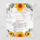 A marble background decorated with sunflowers, eucalyptus greenery and golden leaves. Personalise and add your names and party details.