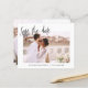 Budget Wedding Save the Date Cards that have a photo on the front and back. The Save the Date cards contain a modern hand lettered cursive script typography that are elegant, simple and modern to use after you minimalist simple wedding day celebration.