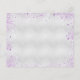 A trendy wedding Save the Date. A faux silver background. Decorated with purple, lavender coloured faux glitter sparkles. Personalise and add a date, place and your names. Save the Date is written with a modern hand lettered style script with swashes.