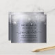 A trendy wedding Save the Date. A faux silver background. Decorated with snowflakes Personalise and add a date, place and your names. Save the Date is written with a modern hand lettered style script with swashes.