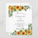 A white background decorated with sunflowers, eucalyptus greenery. Personalize and add your names and party details.