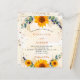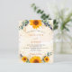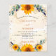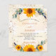 A white and golden watercolored background decorated with sunflowers, eucalyptus greenery and golden leaves and faux gold glitter dust. Personalise and add your names and party details.