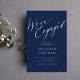 Simple minimal chic whimsical calligraphy dark navy blue we're engaged script budget affordable engagement party invitation.