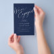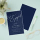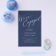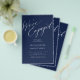 Simple minimal chic whimsical calligraphy dark navy blue we're engaged script budget engagement party invitation PAPER FLYER (advertising type of paper suitable for folded mailings). ++++++++++++++++ PLEASE READ THIS BEFORE PURCHASING! This is a low budget wedding invite printed on a FLYER. ++++ Please note that BUDGET PAPER IS THIN - You can upgrade to have this card printed on cardstock ++++ ENVELOPES NOT INCLUDED. +++ Double-check all the information and spelling of your text because you will receive exactly what you see - no one else will check anything before printing. ++++ This card is designed for size 5.5" x 8.5".