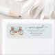 Chic boho moving announcement return address label featuring watercolor red female bicycle with modern hand lettered and black typography you can customise.